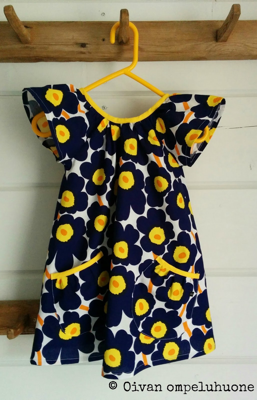 Juhannuksenpyhät pyörittelin tätä unikkokangasta mielessäni ja eilen sitten ompelin vielä yhden mekon.